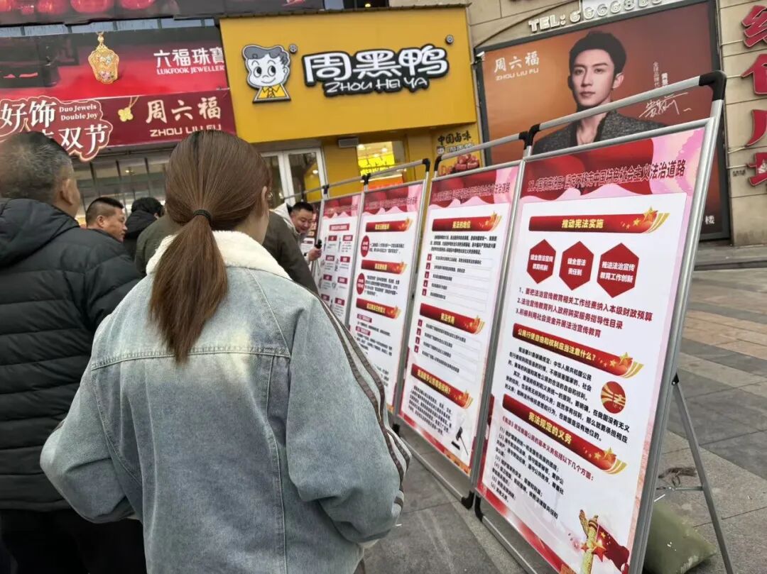 宪法知识展板前,市民驻足细看,从国家根本大法的核心要义到与日常生活密切相关的权利义务,图文并茂的解读让法律条文不再晦涩;