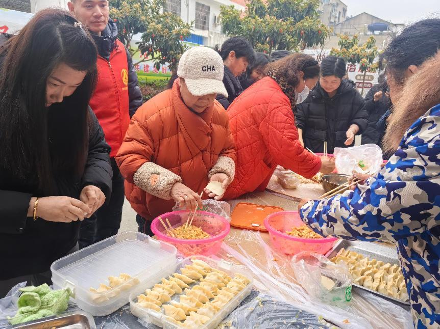 活动现场热闹非凡。社区工作人员、银行工作人员和居民分工合作,有的准备食材、有的清洗白菜、有的调制馅料,现场欢声笑语不断,每个人都沉浸在欢乐与和谐的氛围中。在包饺子的过程中,大家交流了包饺子的技巧,还分享了各自的生活经验和趣事,加深了彼此的了解和友谊。不一会儿,一个个饱满圆润的饺子就摆满了托盘。包完饺子后,社区工作人员和邮政储蓄银行工作人员们带着爱心饺子走访了小区高龄老人,给他们送去温暖和关怀。小区何奶奶开心地说:“社区举办这样的活动很有意义,希望社区能够多举办类似的活动,让更多的居民参与到其中,共同感受传统文化的魅力与社区的温暖”。