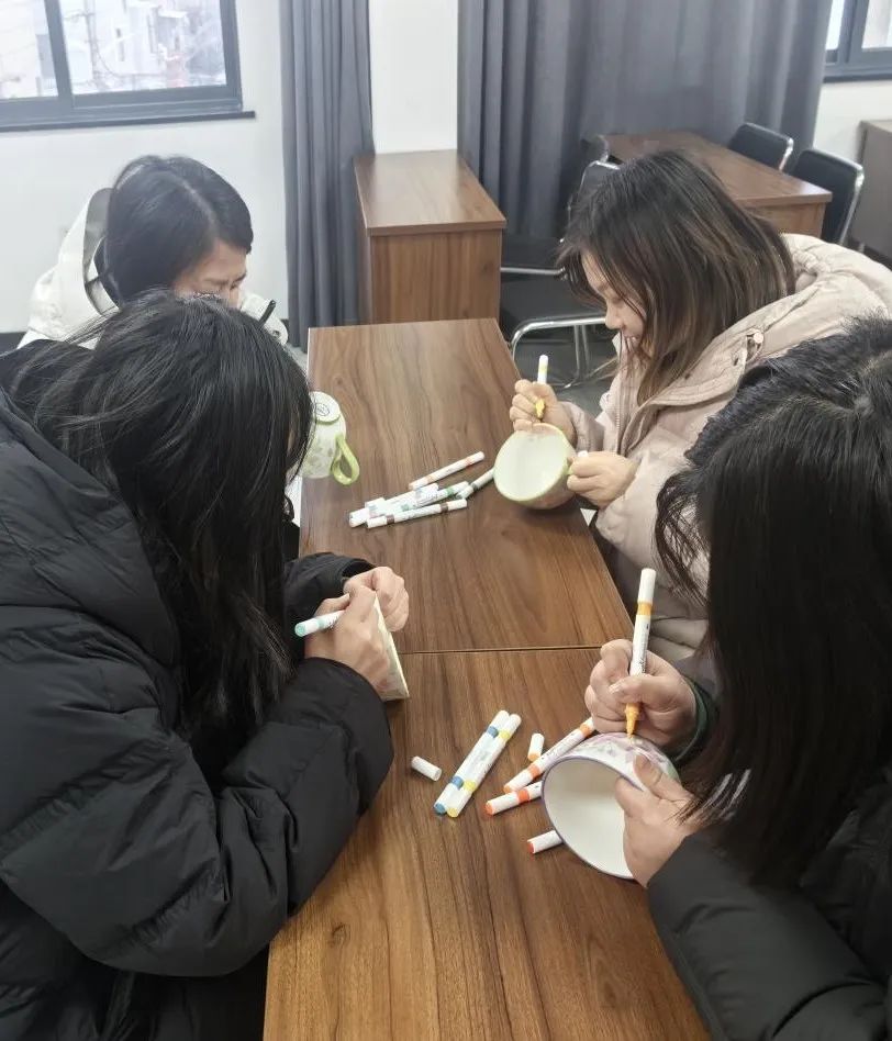 3月6日,南浦路社区联合风信子社工开展“和谐共生 爱的传递”陶瓷杯DIY活动。社区女同胞们执笔绘制专属图案,有的勾勒花朵,有的书写温馨祝福,还有充满童趣的卡通形象,经过一个多小时的努力,一个个独一无二的陶瓷杯作品陆续完成。
