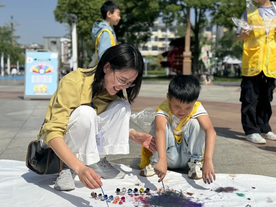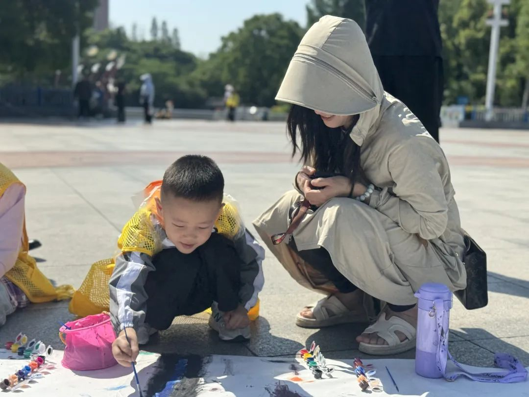 活动现场,调色盘在阳光下折射出虹彩,画笔整齐列队,宛如整装待发的士兵。志愿者们化身艺术引路人,“小艺术家们,魔法时刻到!” 志愿者摇晃着颜料瓶,将满载色彩的 “创意宝盒” 送到孩子们手中。