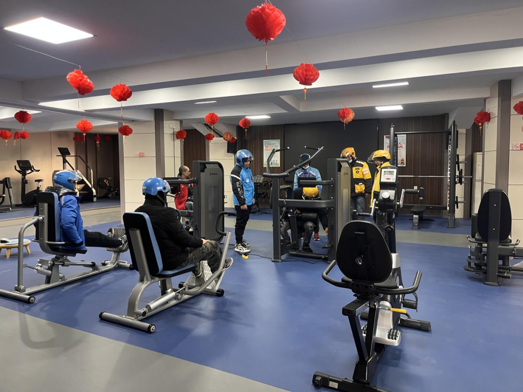 分享会结束后,红庙社区志愿者向外卖小哥们介绍了图书室旁边的免费社区健身房。健身房内设施齐全,包括跑步机、哑铃等健身器材,以及舒适的休息室和饮水机。志愿者告诉他们,有空余时间时,可以来健身房锻炼身体,增强体质;同时,社区还提供休息室,内有躺椅等设施,供他们随时休息和喝水,以缓解工作的疲惫。