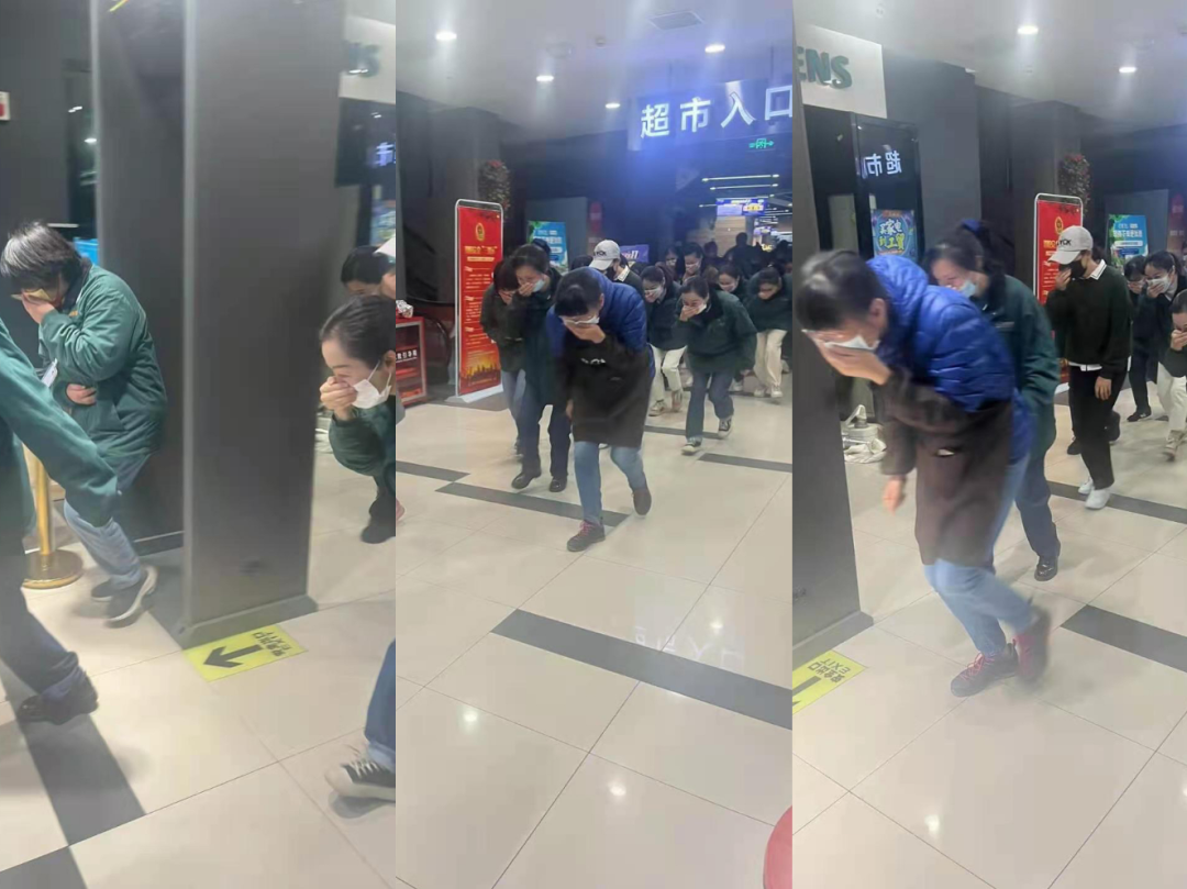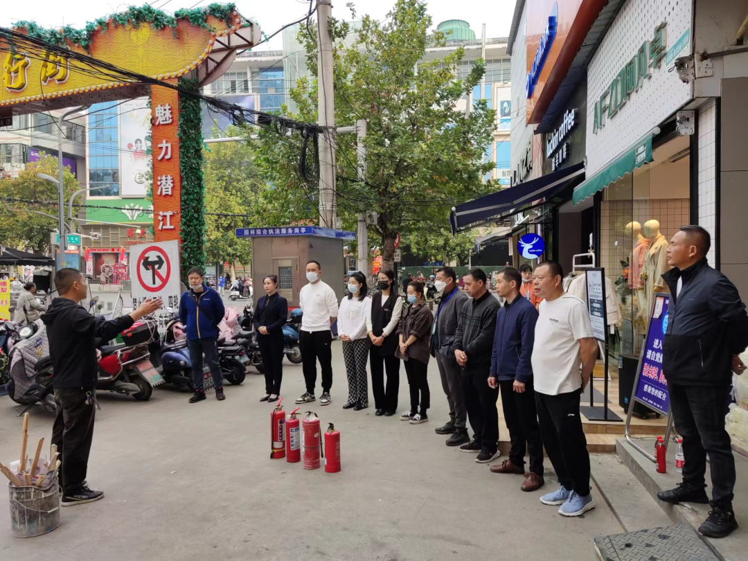 社区志愿者们通过发放宣传册等方式,向居民宣传消防安全知识,让消防安全意识入脑入心。进入武商超市,社区工作人员及武商超市工作人员整装集合开展消防演习活动。随着模拟烟雾警铃的响起,超市员工用手捂住口鼻,按照消防指示,迅速从通道有序撤离,到达指定区域。在外集合后,饮食服务公司义务消防队员为部分商户进行消防知识实训教学,大家仔细聆听如何使用过滤式防毒面罩、穿戴作战服、连接消防水带以及使用干粉灭火器等知识,最后通过实操检验学习效果,进一步增强了消防安全意识。