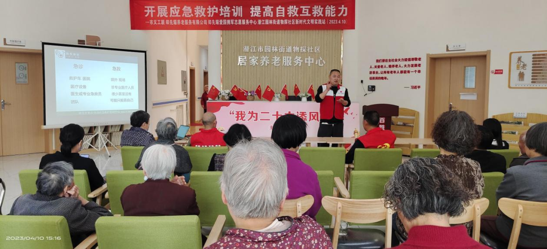 为进一步提高辖区居民对家庭急救知识的熟练度,增强居民自救、互救、急救能力,4月10日,物探社区新时代文明实践站联合郑先耀养老服务有限公司,邀请市义工联的志愿者为辖区居民开展应急救护健康知识讲座。