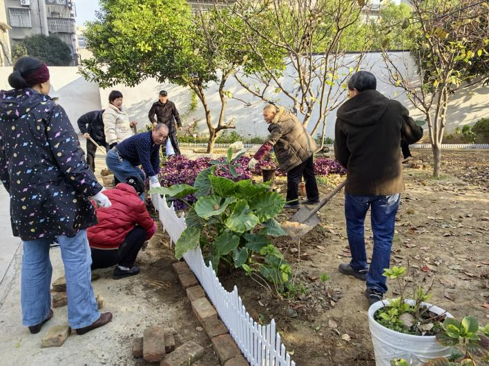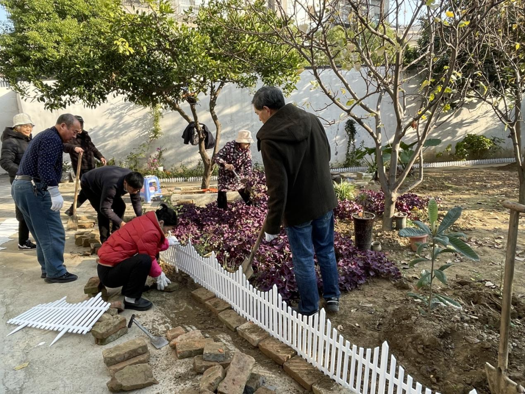 安装篱笆过程中,男女老少齐上阵,大家分工明确、配合默契,有的搬运篱笆,有的挥锹铲土,有的固定安装,现场忙碌而有序。尽管天气寒冷,但居民们热情高涨,每个人的脸上都洋溢着幸福的笑容。经过共同努力,果园四周崭新的篱笆安装完成,干净又整齐,与绿植花卉相映成趣,不仅有效保护了果树的生长环境,更为小区增添了一份整洁与美观。石化小区党支部书记夏冬云表示:“共享果园的建设不仅是为了美化环境,更是为了营造一个温馨和谐、互帮互助的社区氛围,让居民们在享受劳动成果的同时,感受到社区大家庭的温暖。”