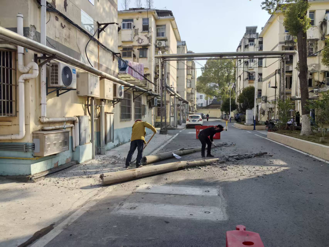 针对居民反映的物探机关小区废弃电线杆安全隐患,包保单位广电公司迅速响应,在社区网格员配合下,仅用一天时间完成现场勘查、杆体拆除和地面修复,及时消除安全风险,展现"民有所呼、我有所应"的服务效率。
