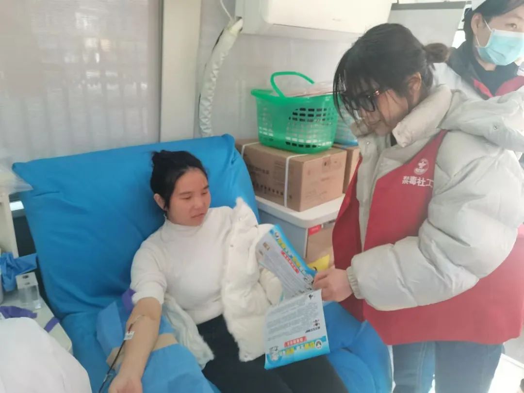 禁毒社工者们身着红色马甲,手持宣传手册,耐心地为每一位等待献血或是献完血稍作休息的党员干部群众讲解毒品危害,以本地鲜活案例为切入点,讲述因一时好奇沾染毒品,最终失去健康、倾家荡产甚至走向犯罪深渊的真实故事,让抽象“禁毒”概念化作具象警钟长鸣于心。