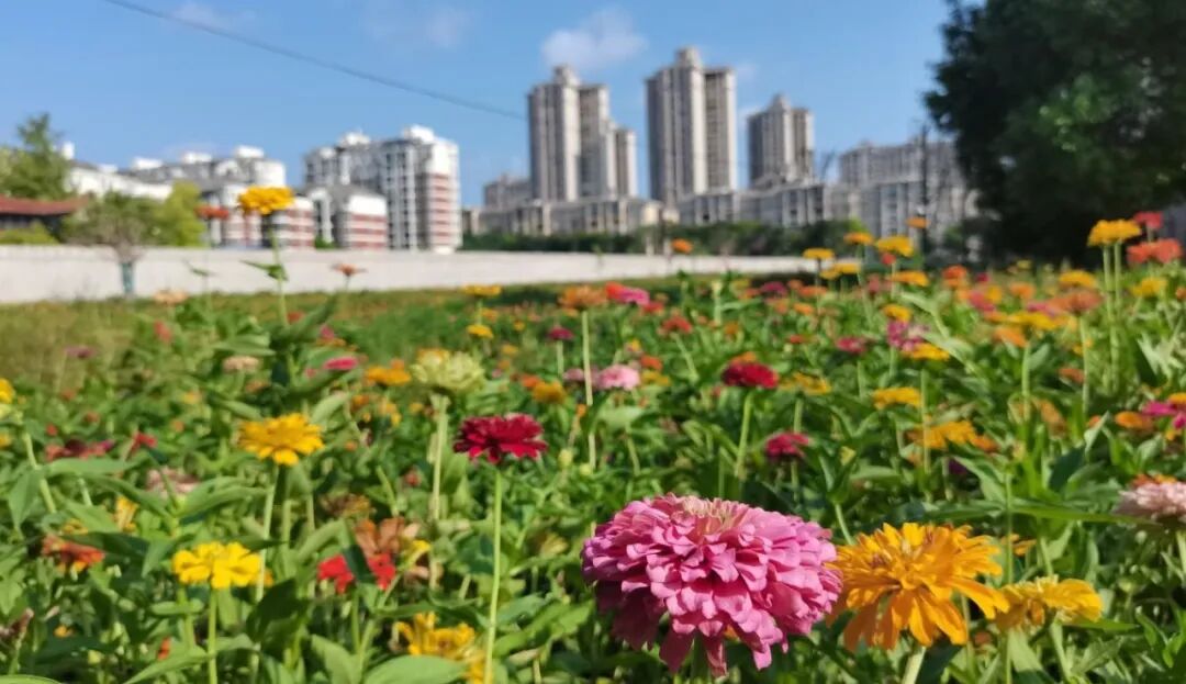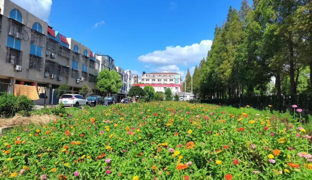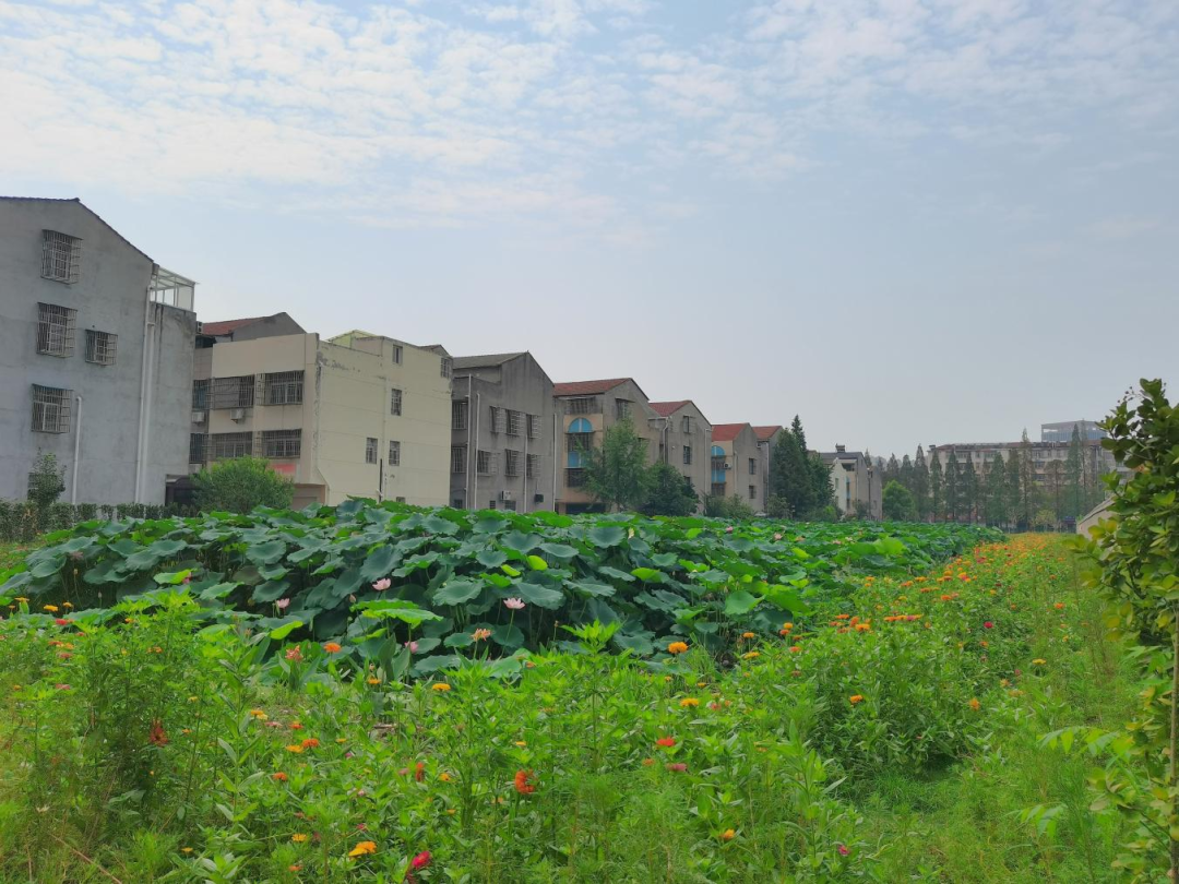 随着基础设施日益完善,社区的“芳华”逐渐绽放。志愿者们种下的百日菊、秋英绚烂盛开,闲置池塘变身清新荷塘,微风拂过,花香四溢。居民推窗即见连绵绿意,文明新风与自然景致在此交融。