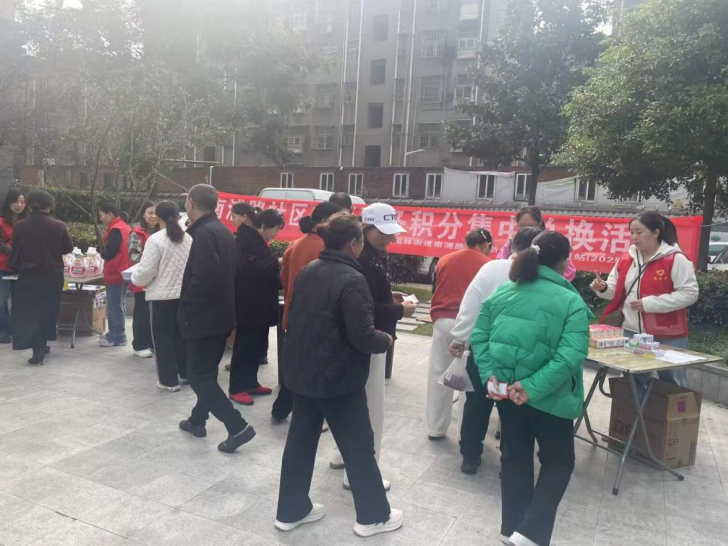 近日,在园林街道南浦路社区樟华国际小区内,一场特别的“居民公约+积分制”志愿服务积分兑换活动有序开展。现场洗衣液、抽纸、洗洁精、香皂等生活用品一应俱全,居民们手持积分卡有序排队、按分兑换,脸上洋溢着喜悦的笑容。