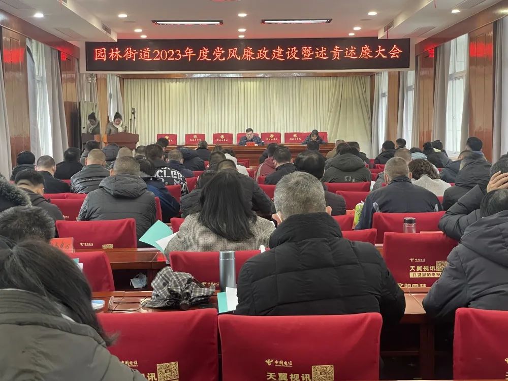 为深入推进全面从严治党,为进一步强化对领导干部的监督管理,持之以恒推动党风廉政建设主体责任和监督责任落地生根,2月14日下午,园林街道召开2022年度党风廉政建设工作暨述责述廉会。园林街道党工委书记关洪涛参加会议并讲话,街道纪工委书记邬凌云作工作报告。街道全体班子成员、机关干部、社区(村)党组织书记、处直单位主要负责人参加会议。