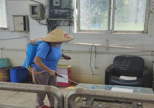 市农村环境卫生管理局紧盯农村环卫重点区域,督促市场化公司对各乡镇垃圾集并点、压缩站设备箱体内部、渗滤液沉淀池、下水道、排水沟等蚊虫易孳生场所进行拉网式排查和清理,并建立消杀台账。科学使用低毒高效杀虫剂对垃圾处理设施及周边进行喷洒,在积水场所投放灭蚊幼剂,阻断蚊虫生长周期。同时通过微信群、现场讲解等方式向环卫从业人员普及防蚊知识。