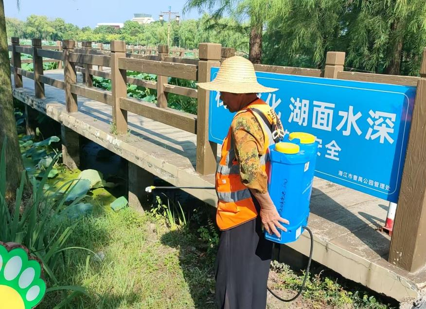 南门河游园管理处分组推进专项工作:全面清理花坛、草坪等易积水区域;对游客密集场所、厕所周边等重点区域实施药物消杀;在园区入口及休息区张贴防蚊公告加强宣传引导;结合“全民洁城”活动清理居民小区及卫生死角垃圾杂物,消除蚊虫滋生隐患。