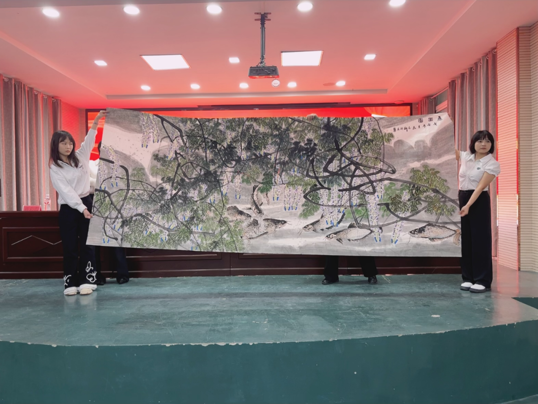 商会爱心团成员、中国美术家协会会员马在新教授向杨市小学捐赠一幅个人原创作品《紫滕鱼樂图》。商会党支部书记张志成表达了商会成员对家乡教育事业的关心,以及对教育事业工作者的崇高敬意。