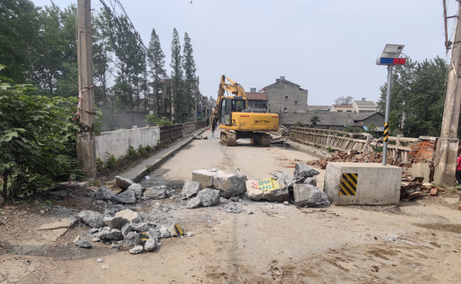 4月28日,伴随阵阵“轰隆隆”的机械破板声,竹根滩镇三江村三江桥危桥改造工程正式开工。