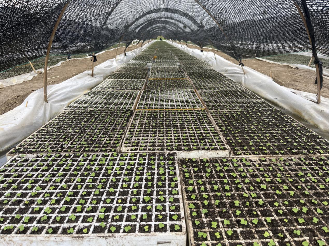 “目前正是甘蓝、白菜育苗时期,前几天培育的种子已经发芽了,再过些天等苗大了就可以移栽田间了。”向记者介绍的是合作社理事长陈时军。
