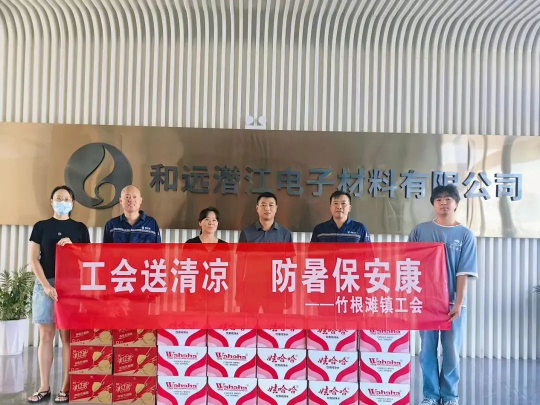 竹根滩镇党委副书记、镇长李晨带队一行人首先前往和远潜江电子特种气体有限公司,为一线职工代表送上一批夏季清凉饮品,叮嘱他们要注意防暑,照顾好身体。同时,要求企业管理人员合理安排工作时间,严格落实夏季高温安全生产责任制,为企业职工营造良好的工作环境,确保职工的安全和健康。然后,慰问组一行人还来到环卫工人工作现场、卫生院和城建中心,为一线农民工和工作人员送上防暑物资,感谢他们为集镇运行和群众生活提供坚强保障,叮嘱大家合理安排作息,做好高温防暑工作。炎炎夏日送清凉,丝丝关爱入心田。此次慰问活动共慰问一线职工和农民工600余人。下一步,该镇工会将继续精准服务定位,倾听职工呼声、关注职工诉求,增强职工的凝聚力、向心力和战斗力,为竹根滩镇高质量发展贡献工会力量。