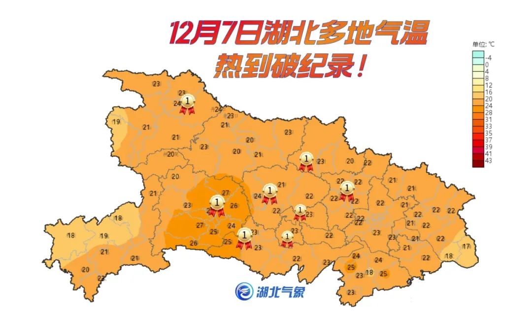 最高气温:鄂西北7~10℃;其他地区12~16℃
