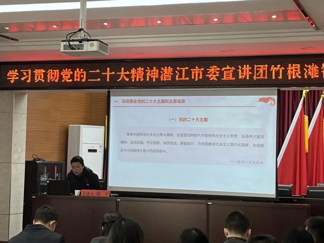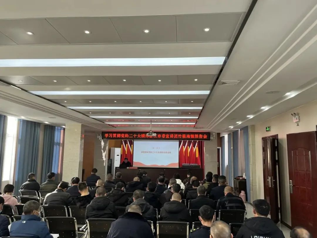12月12日下午,竹根滩镇举办学习贯彻党的二十大精神宣讲报告会,邀请市委宣讲团成员、市生态环境局党组书记、局长刘平同志作专题辅导报告。镇党委政府主要领导、机关全体干部、镇直各部门负责人、各村居党支部书记参加会议。