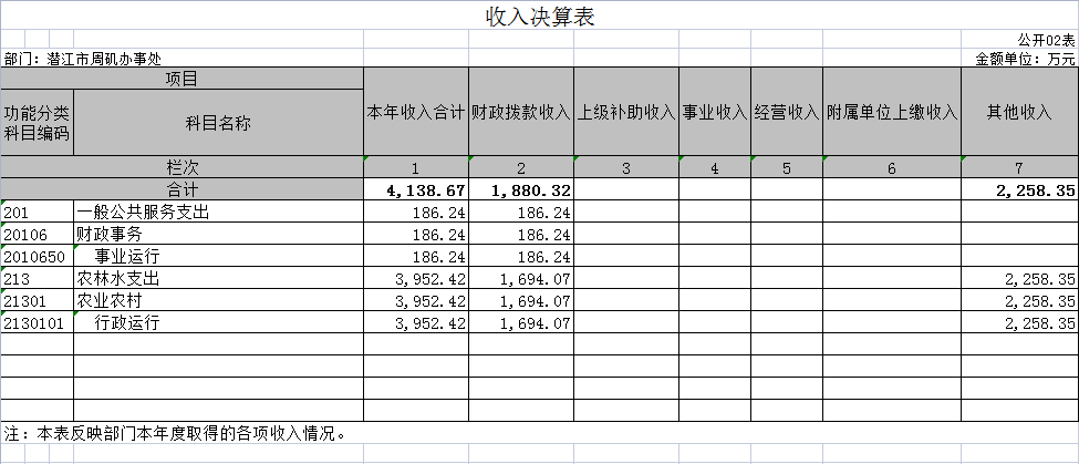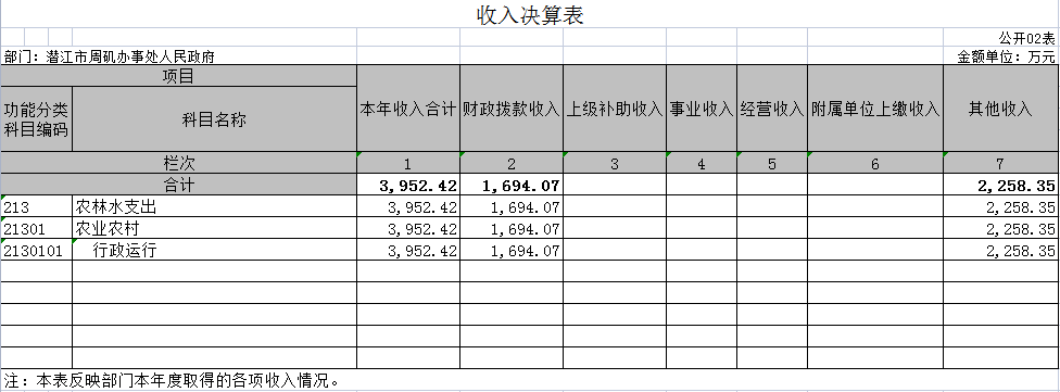 二、收入决算表