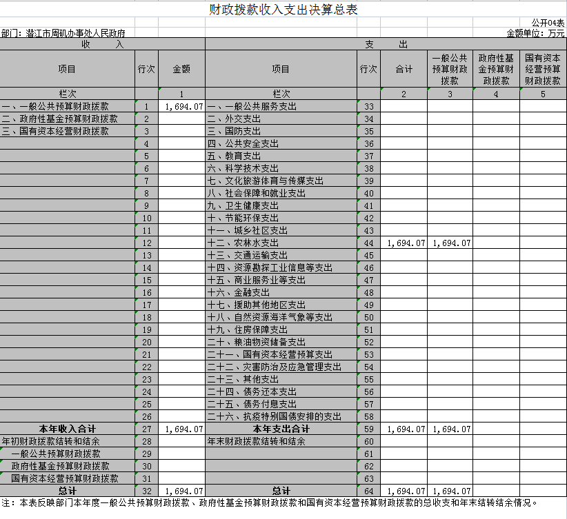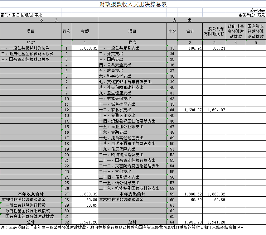 四、财政拨款收入支出决算总表