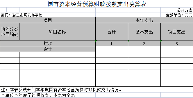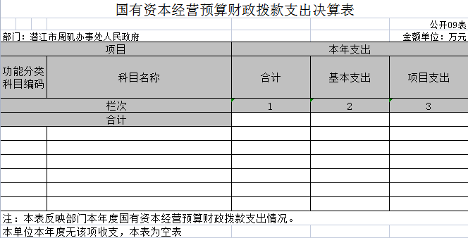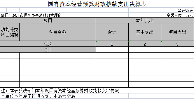 九、国有资本经营预算财政拨款支出决算表