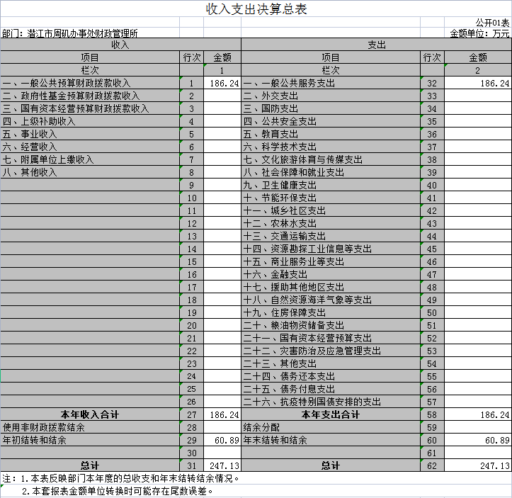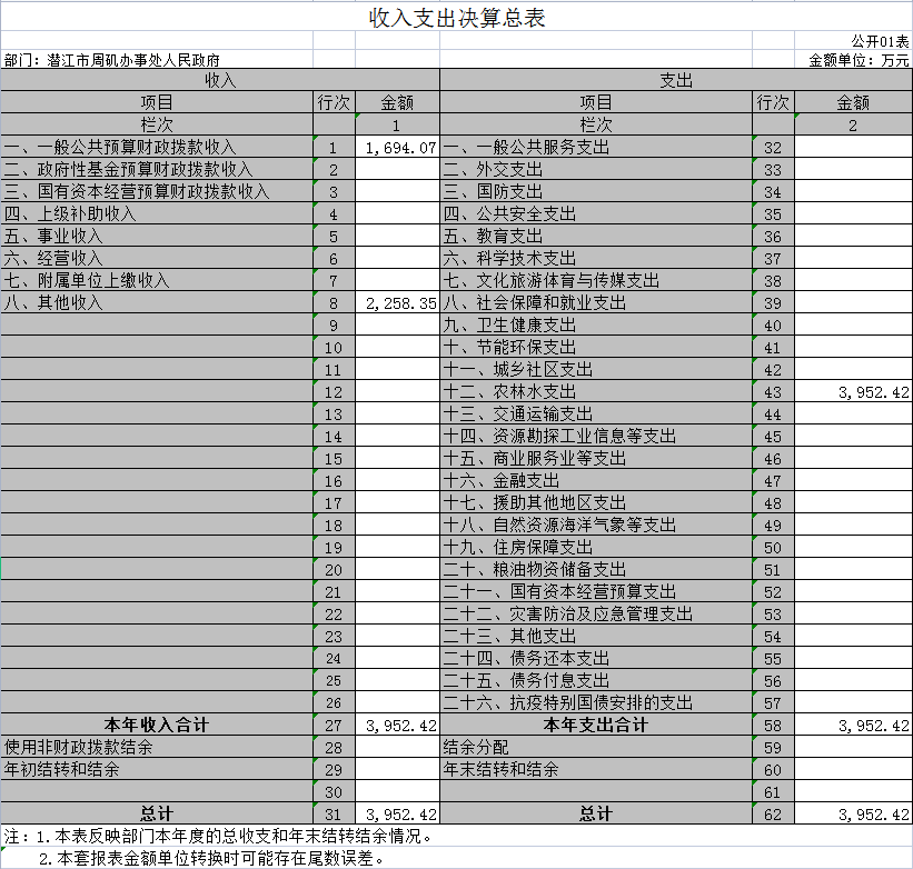 一、收入支出决算总表