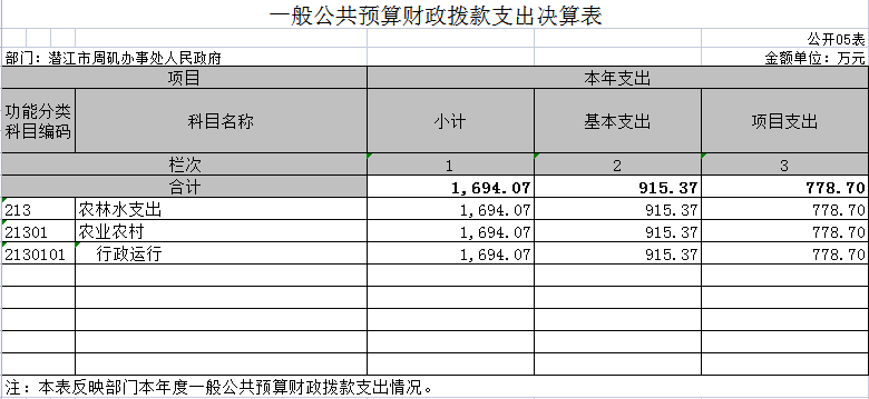 五、一般公共预算财政拨款支出决算表