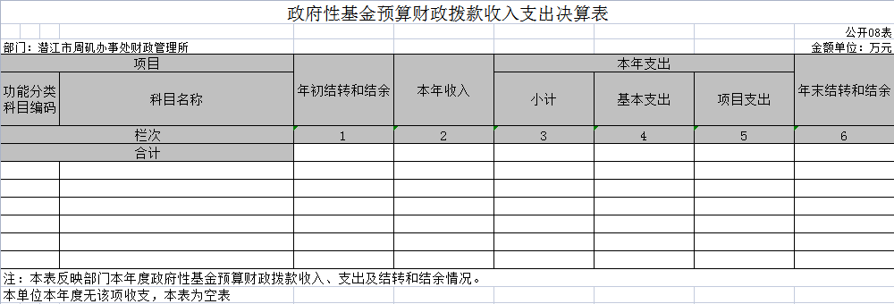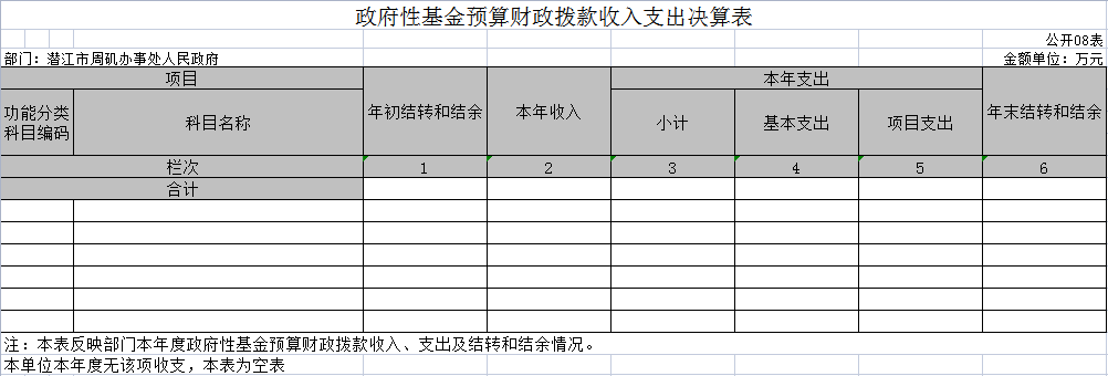 八、政府性基金预算财政拨款收入支出决算表