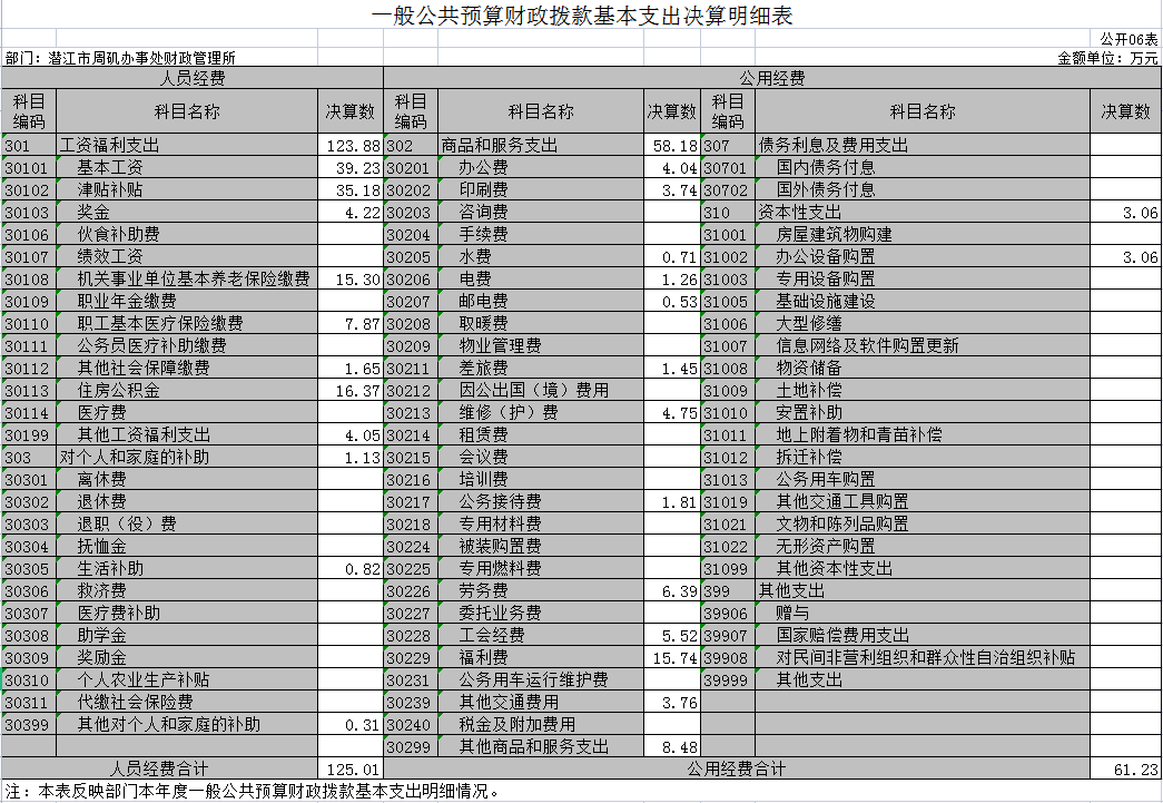 六、一般公共预算财政拨款基本支出决算明细表