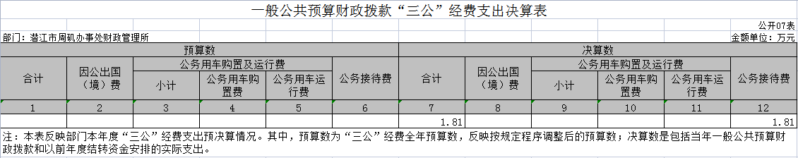 (十六)“三公”经费:纳入财政一般公共预算管理的“三公”经费,是指市直部门用一般公共预算财政拨款安排的因公出国(境)费、公务用车购置及运行费和公务接待费。其中,因公出国(境)费反映单位公务出国(境)的国际旅费、国外城市间交通费、住宿费、伙食费、培训费、公杂费等支出;公务用车购置及运行费反映单位公务用车购置支出(含车辆购置税、牌照费)及燃料费、维修费、过桥过路费、保险费、安全奖励费用等支出;公务接待费反映单位按规定开支的各类公务接待(含外宾接待)费用。