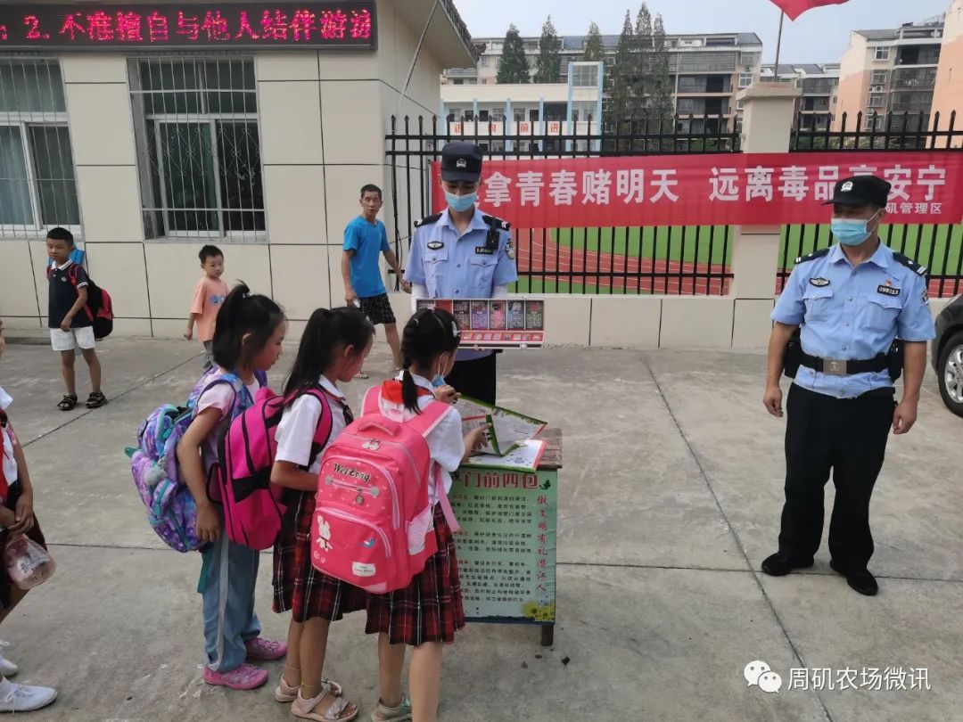 为进一步增强青少年的识毒、防毒、拒毒意识,提高青少年抵御毒品侵害的能力和禁毒意识,充分发挥学校禁毒宣传教育阵地作用,9月13日,周矶管理区政法办、派出所、禁毒办前往周农前进小学开展以“莫拿青春赌明天 远离毒品享安宁”为主题的禁毒宣传进校园活动。