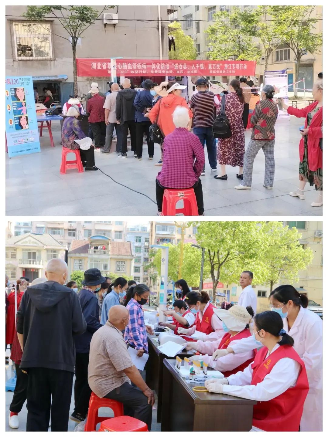 为提升社会各界对心脑血管疾病防治工作的关注度,增强群众对心脑血管疾病防治的意识,5月6日,周矶管理区组织医务人员在兴隆社区花园小区广场开展心脑血管健康宣传、爱心义诊等志愿服务活动,在辖区掀起一股体检热潮。