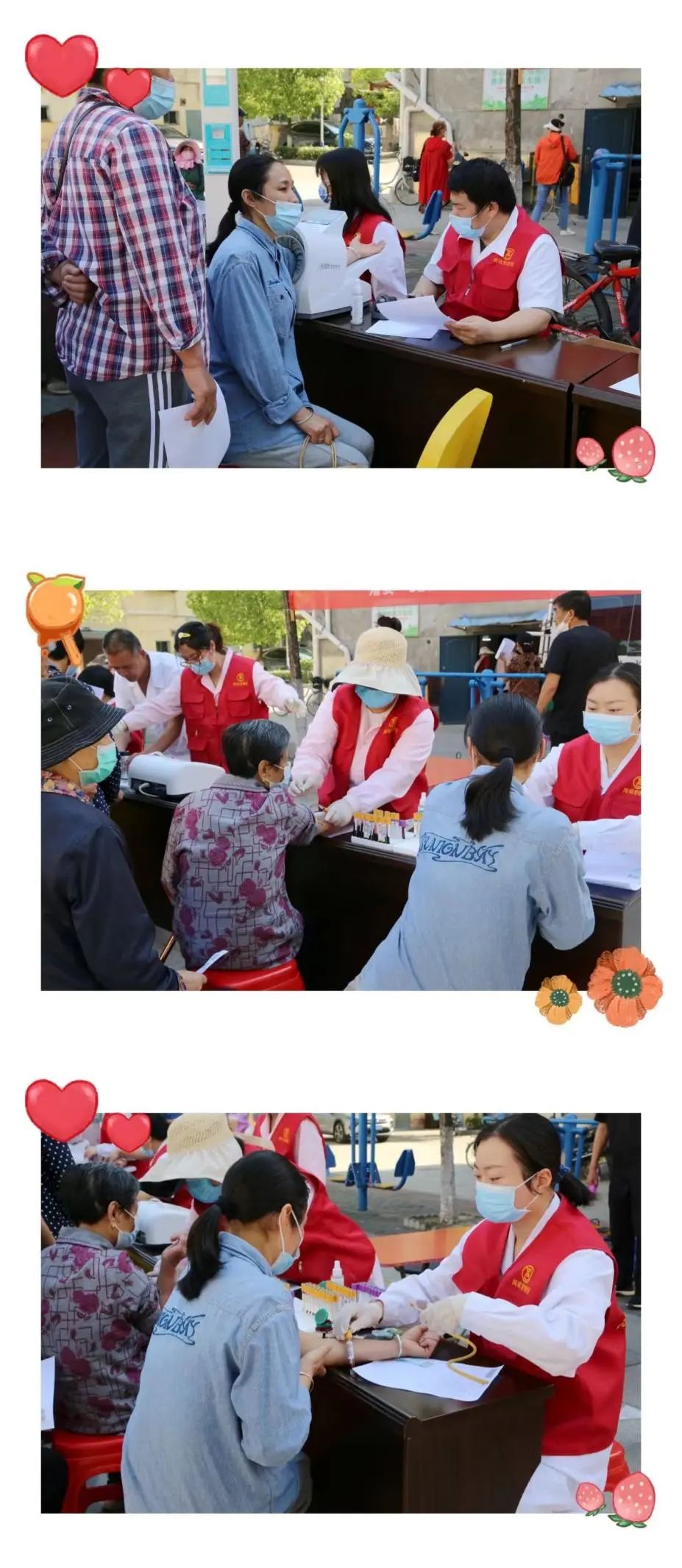 活动现场,映入眼帘的就是两块醒目的宣传板,告知大家遇到急性心肌梗死后的自救办法,提醒大家把握黄金救治的6小时。现场有秩序、有温度、有速度,医务人员分点对社区居民进行义诊、健康咨询、健康宣教等,有的登记信息、有的量血压、有的查血糖、有的查心电图,营造了辖区内医疗卫生系统良好的文明服务氛围。辖区的居民积极有序参与体检,筛查心脑血管疾病。此次活动切实让群众参与心脑血管疾病防治,提高了群众卫生健康获得感、幸福感、安全感。