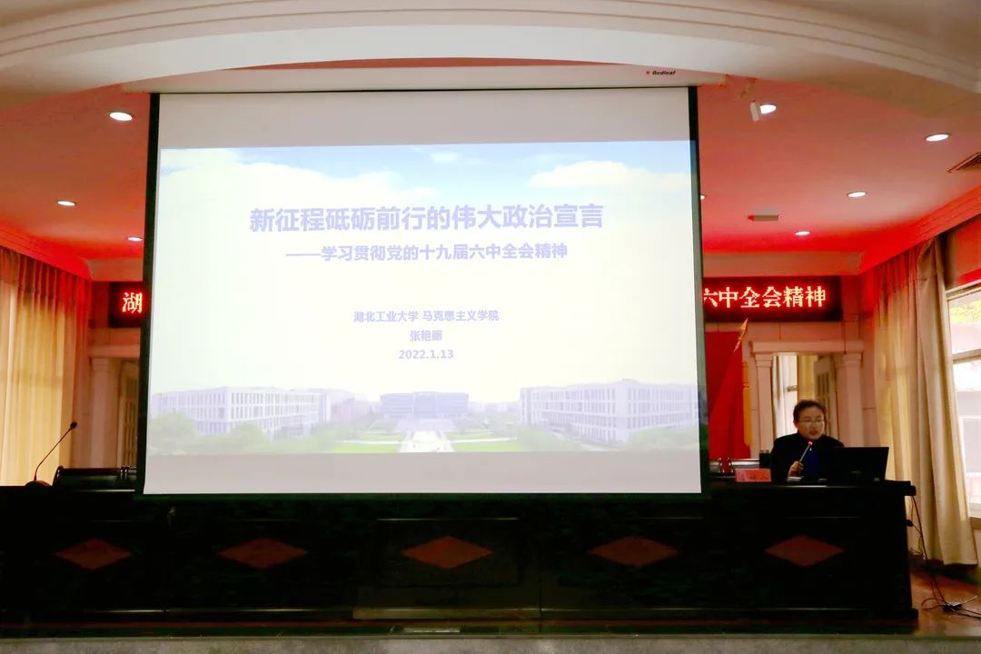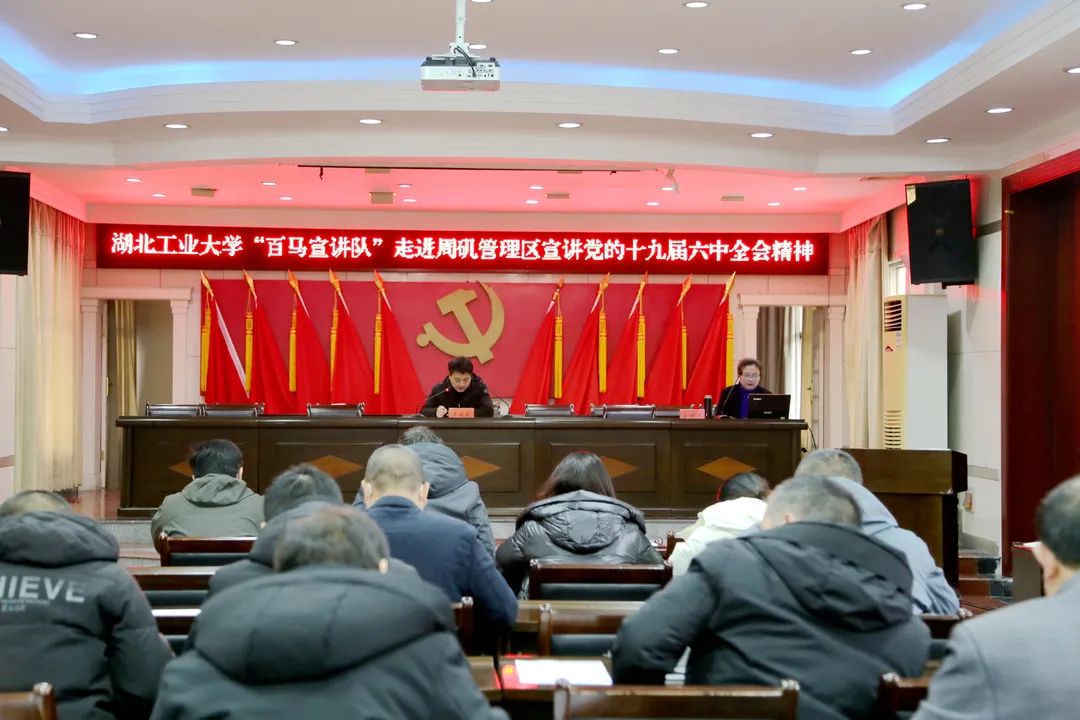 宣讲报告会邀请湖北工业大学“百马宣讲队”成员张艳丽作专题辅导报告。张艳丽以《新征程砥砺前行的伟大政治宣言》为题,从深刻认识总结党的百年重大成就和历史经验的重大意义,深刻认识党的百年奋斗的初心使命和重大成就,深刻认识中国特色社会主义新时代的历史性成就,深刻认识党的百年奋斗的历史意义和历史经验,深刻认识以史为鉴、开创未来的重要要求,从党的百年奋斗历程中汲取智慧和力量六个方面对党的十九届六中全会精神进行了深入解读,报告主题鲜明、脉络清晰,内容振奋人心、催人奋进,对管理区党员干部学习宣传贯彻好全会精神具有重要的指导意义。