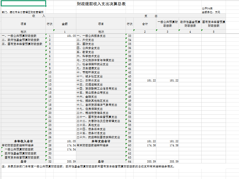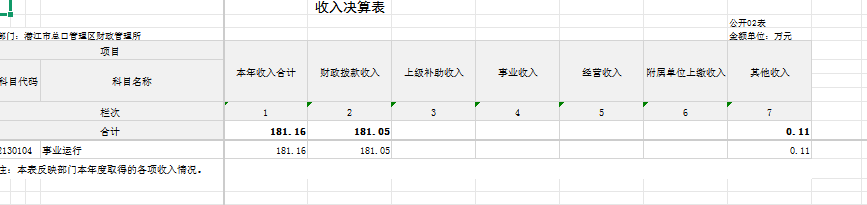 收入决算表