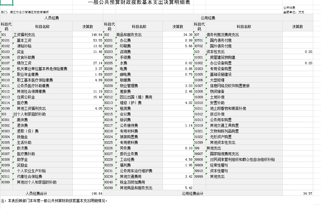 第二部分 潜江市总口管理区财政管理所2024年度单位决算表