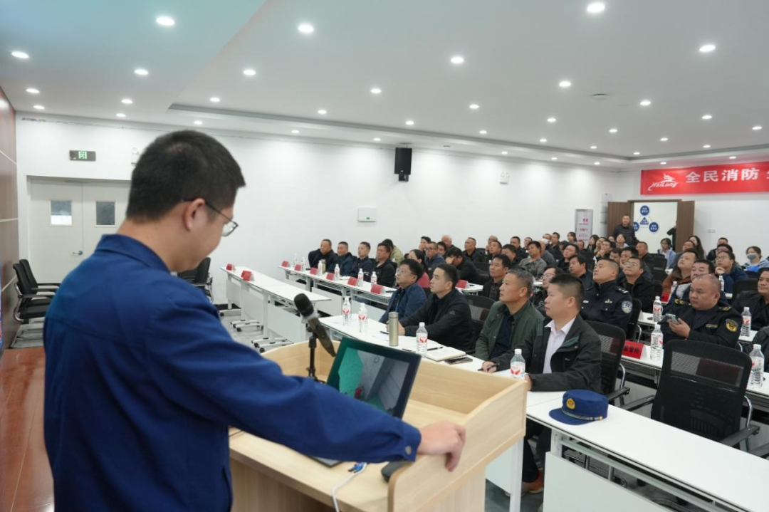 活动伊始,全体参会人员集中观看了消防安全教育警示片,触目惊心的火灾案例、发人深省的事故教训,让现场人员深刻认识到火灾防控的重要性与紧迫性。随后,管理区党委副书记、主任凡鹏在启动仪式上强调,要通过多样宣传教育活动提升全民消防安全意识与应急处置能力,筑牢防火安全底线,企业代表承诺落实主体责任。市消防救援队专家程维围绕火灾隐患识别、初期火灾扑救、灭火器规范使用、紧急疏散逃生等核心内容,进行了深入浅出的消防培训,为现场人员送上了实用的“安全锦囊”。