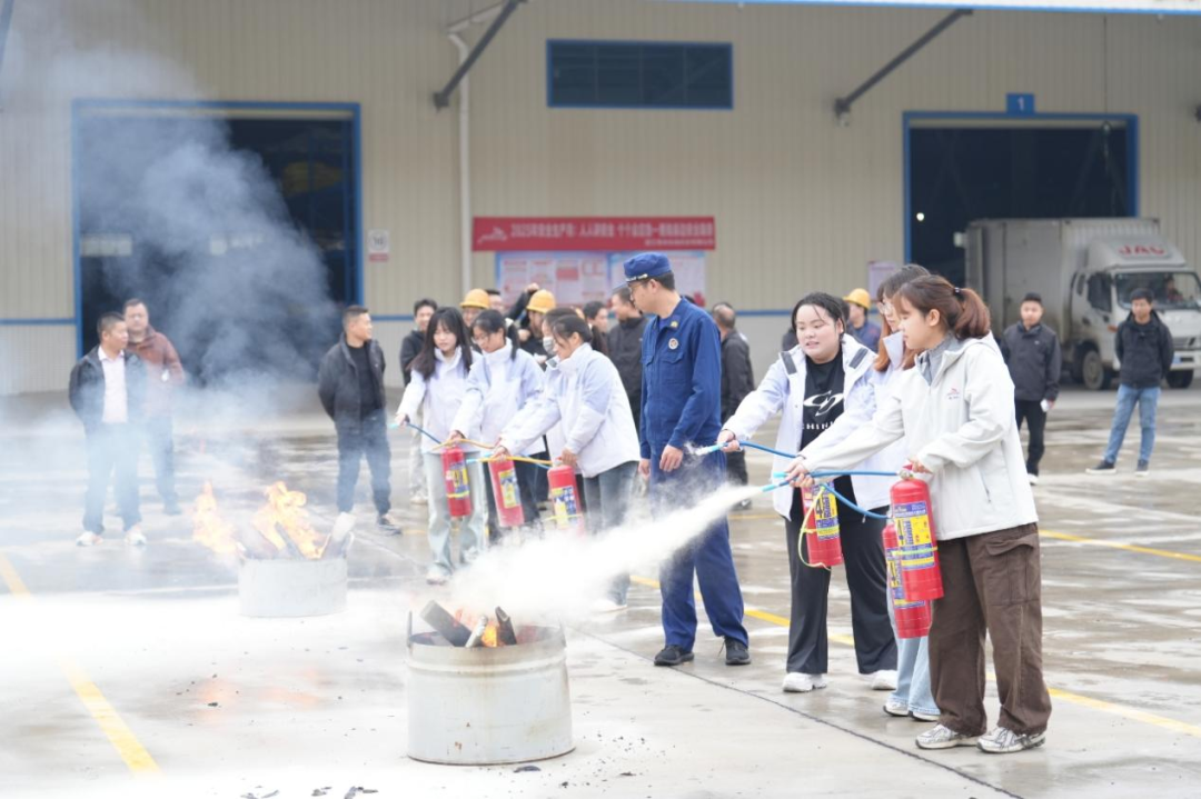 培训结束后,实操演练环节有序开展。随着模拟火灾警报响起,消防演练及火灾事故紧急疏散演练正式启动。30名职工代表在现场工作人员的引导下,按照预定疏散路线,弯腰低姿、捂住口鼻,快速有序地撤离至安全区域,整个疏散过程紧张有序、规范高效。同时,消防救援专家现场演示了灭火器操作技巧,部分职工代表主动参与实操练习,在专业指导下掌握了“提、拔、握、压”的正确使用方法,切实提升了应急处置能力。
