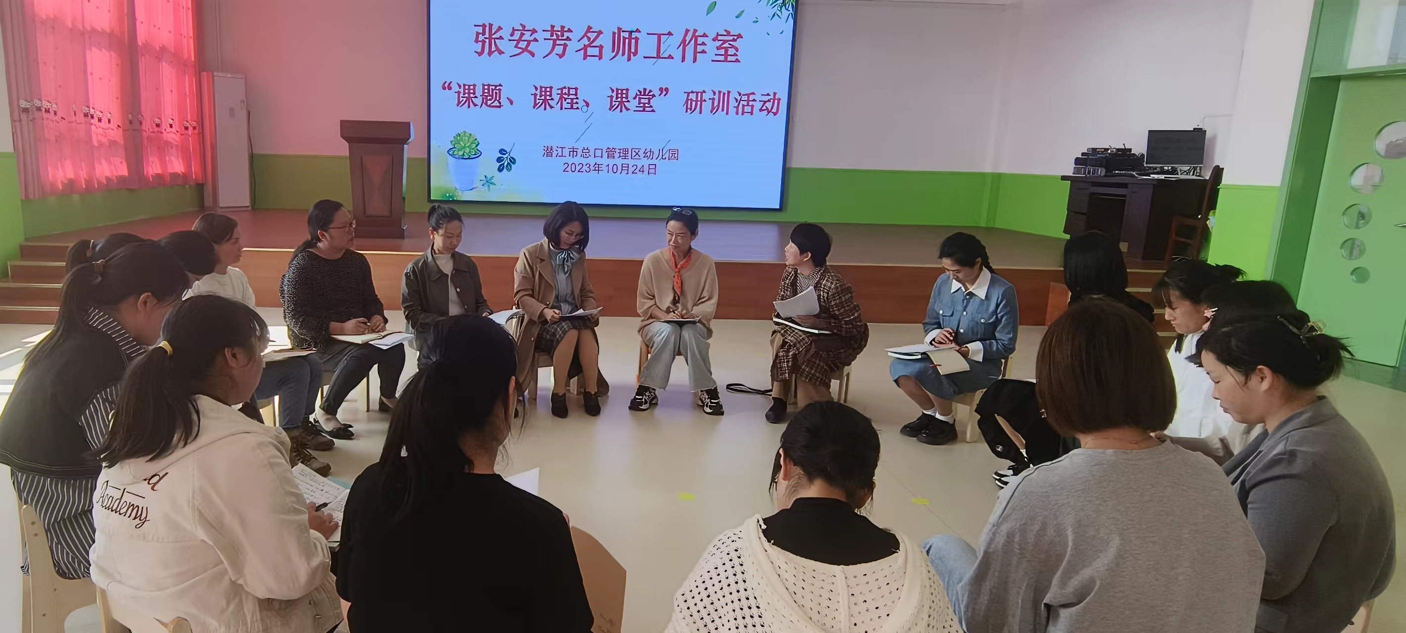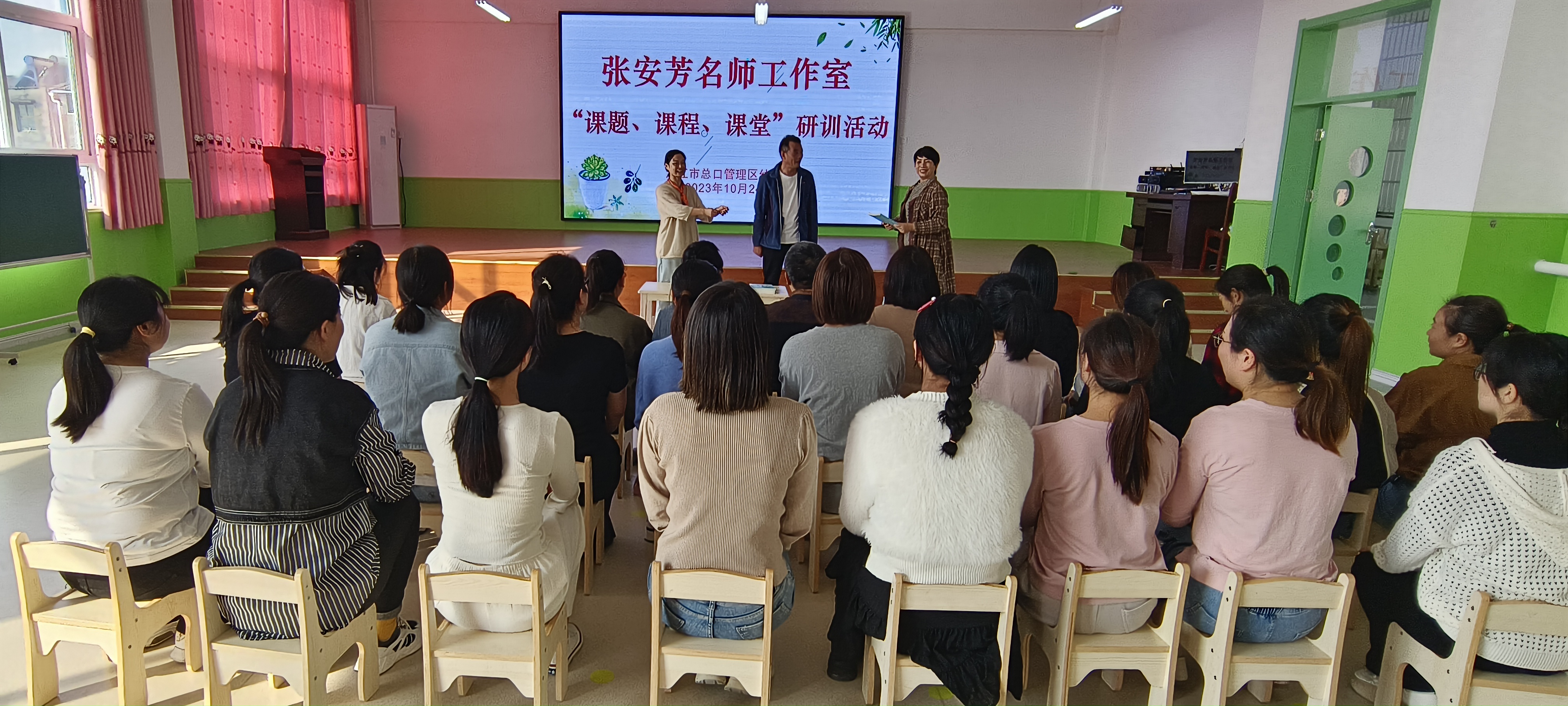 为了充分发挥名师工作室的引领、带动、辐射作用,张安芳名师工作室、总口学区及各姊妹园所园长老师们于2023年10月24日上午,在总口管理区幼儿园开展了“课题、课堂、课程”研训活动。