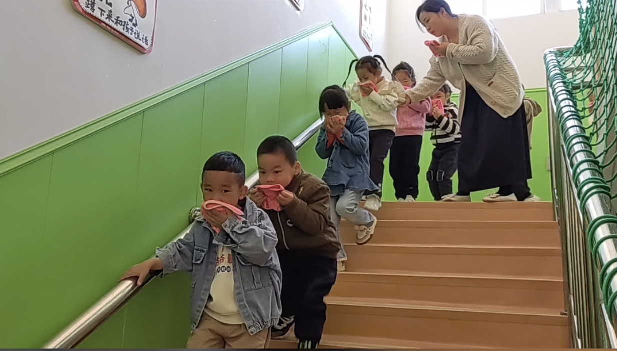 为提高幼儿紧急情况下的自我保护能力,我园组织幼儿进行了应急消防演练活动。按照幼儿园突发事件安全应急预案,各班主任、楼层指挥人员迅速到班到岗,并沉着冷静地指挥幼儿用湿毛巾捂住口鼻,放低身体,按照突发事件疏散路线,紧急撤离教学楼,疏散到指定安全区域。