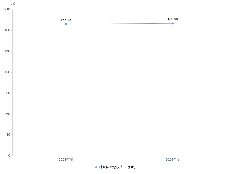 2024年度财政拨款收、支总计均为189.99万元。与2023年度相比,财政拨款收、支总计各增加1.01万元,增长0.5%。主要原因是项目支出增加。