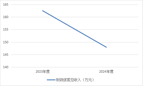 2024年,下达年初预算156.93万元,其中财政拨款收入147.90万元,当年财政拨款收入占比100.00%。与2023年度相比,2024年度收入减少14.61万元,降低8.99%,其中:2024年度一般公共预算财政拨款收入减少14.61万元,降低8.99%。