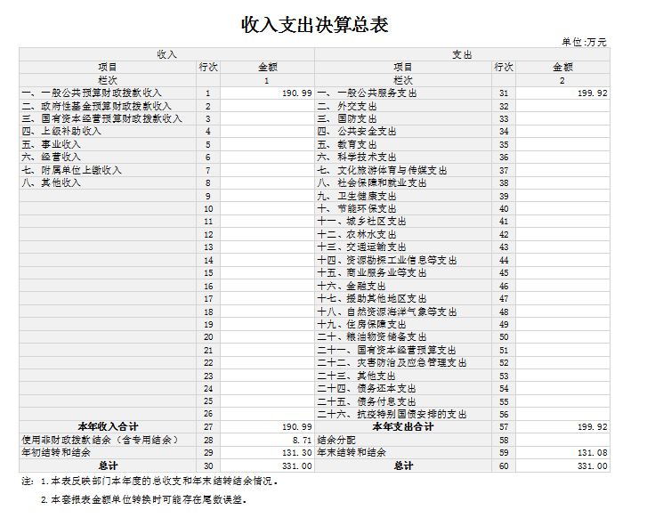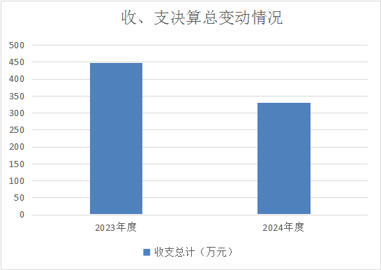 2024年度收、支总计均为331万元。与2023年度相比,收、支总计各减少117.12万元,下降35%,主要原因是退休人员奖励金转到社保部门发放。