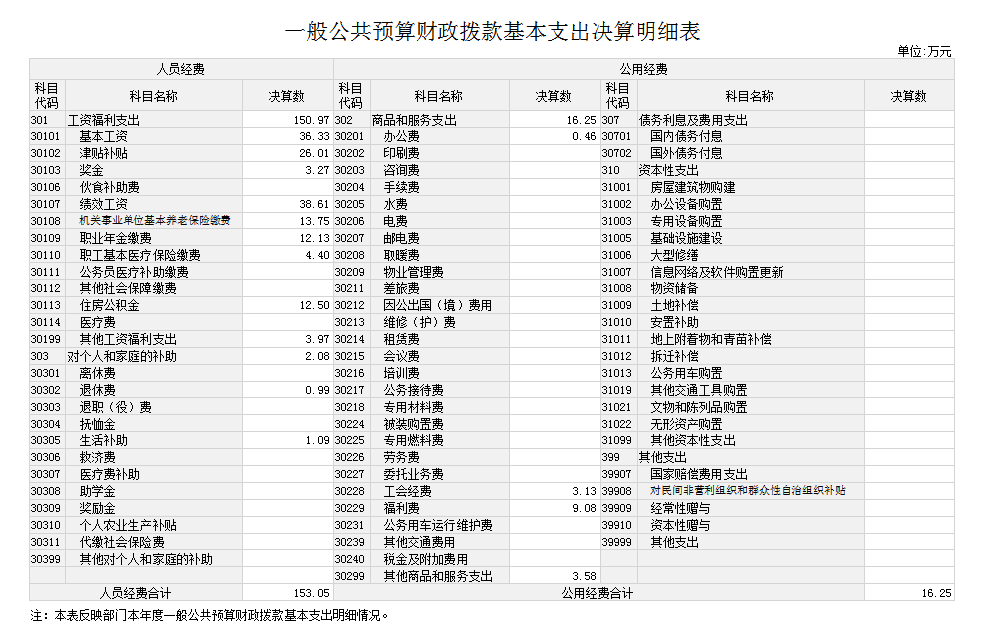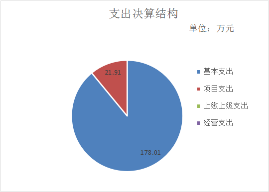 2024年度支出合计199.92万元,与2023年度相比,支出合计减少99.03万元,下降50%。其中:基本支出178.01万元,占本年支出89%;项目支出21.91万元,占本年支出11%。上缴上级支出0万元,占本年支出0%;经营支出0万元,占本年支出0%;对附属单位补助支出0万元,占本年支出0%。