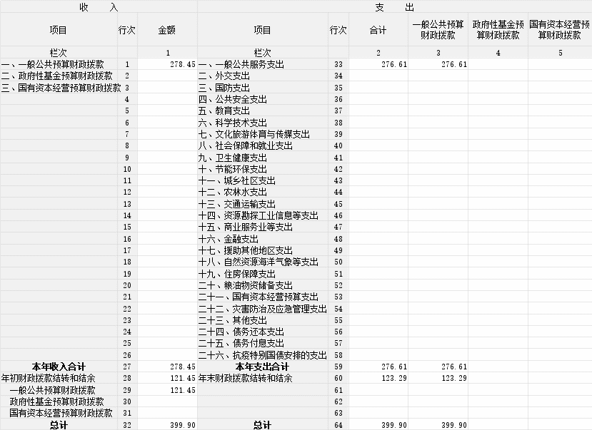 2024年度一般公共预算财政拨款支出年初预算为276.61万元,支出决算为276.61万元,完成年初预算的100%。其中:行政支出226.31万元和财政监察项目支出50.30万元。