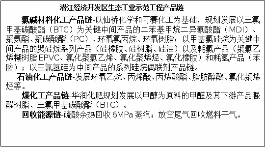 加强潜江经济开发区物质系统、水系统、能量系统集成建设,搭建园区循环经济发展平台,支持企业全面开展清洁生产,推进仙桥化学尾气综合利用、永安药业生产废水循环利用工程、金澳科技油气回收工程、热电联产等项目建设,将潜江经济开发区建设成为以优势资源和主导产业为重点支撑的产业关联型循环经济示范园。以盐化工总厂为重点,发挥卤水资源优势,依托现有氯碱产业基础,对氯、烧碱、氢等初级产品进行延伸加工,打造江汉盐化循环经济工业园。以秸秆利用和农产品加工升级为突破口,大力发展循环型农业,重点推进秸秆综合利用和小龙虾初加工到甲壳素及深加工、联接千家万户的循环农业发展。加强园区余热余压综合利用,保障园区企业用热需求。探索推进城镇生活垃圾分类回收,提升生活垃圾资源化水平。加快建立循环经济服务体系,强化技术研发力度,拓宽融资渠道,促进循环经济快速步入“良性循环”轨道。