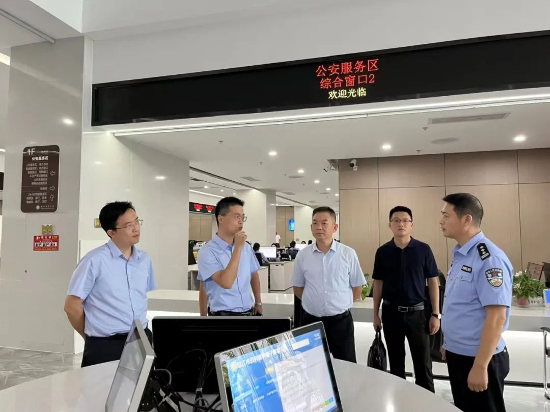 期间,苏才峰同志一行先后实地调研市政务服务和大数据局综合窗口服务区、市公安局政务服务窗口,详细询问了窗口政务服务事项、群众办事办证流程以及自助办证等智能化设施使用情况,并与窗口工作人员亲切交谈。