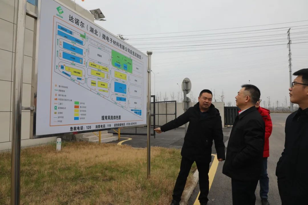 在达诺尔(湖北)微电子材料有限公司,苏才峰同志详细了解企业生产经营情况和二期年产5.3万吨超纯电子化学品工程项目建设进展情况。他表示,企业要抢抓机遇,加快推进二期项目建设,争取设备早日上线、早日投产,确保完成既定生产任务;要始终绷紧安全生产之弦,特别是严格落实易燃易爆、易制毒化学品生产、储存等硬性规定,牢牢守住不发生安全生产事故的底线。