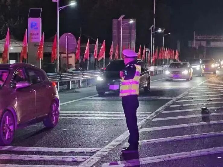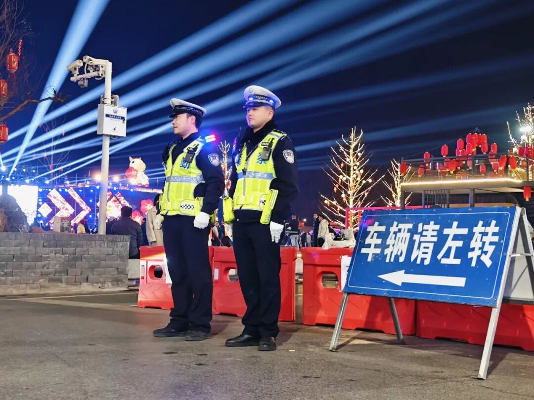 ▲荆州交警在古城景区灯光秀现场维护秩序