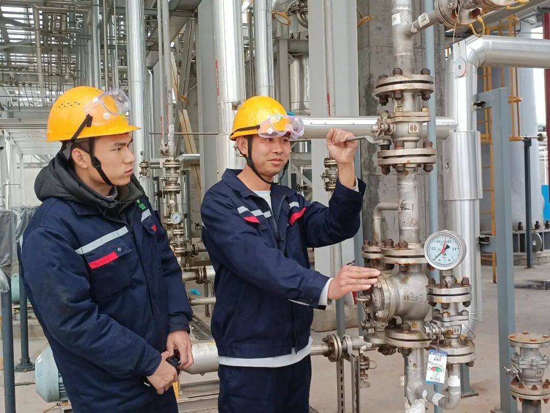 2月25日,达诺尔(湖北)微电子材料有限公司技术人员对蒸馏塔关键部位开展巡检,全力保障生产装置安全平稳运行。今年以来,该公司推行“领导带班、技术护航、全员协同”工作机制,管理人员靠前值守,技术团队24小时待命,对生产全过程实施全方位管控,确保产、供、销各环节安全有序、高效运营。(记者 薛晓军)
