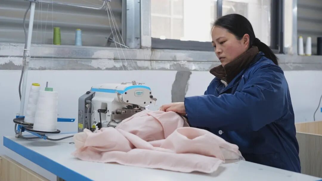 近日,位于总口工业园区的湖北云思蓝纺织服饰有限公司工人正加紧赶制订单。该企业由江苏南通迁回潜江,目前处于试生产阶段,现有工人50余人,主营床上用品等。(记者 艾帅)